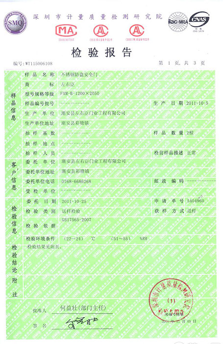 不锈钢门质检报告