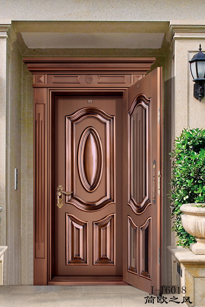 铜门产品材质:钢质内胆,外层为T2洛阳紫铜板