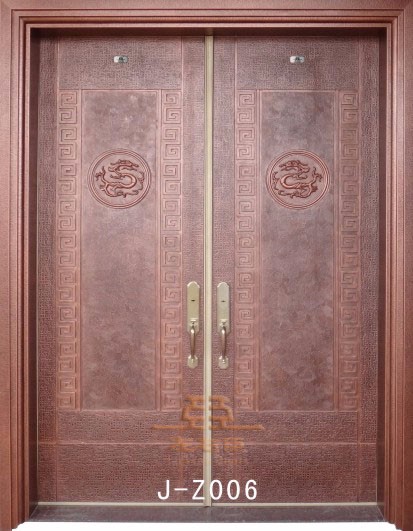 1、 材料:表面正面为一张9MM铸铝板,背面为一张16MM原木面板或者跟正面面板一样材料,铸铝板手绘环保仿古金漆,背面实木面板喷环保油漆。钢芯由两张1.0MM电解钢板夹高强度铝蜂巢构成。门扇四周用硬模电喷铝合金包边或不锈钢包边。门框使用1.2MM不锈钢浮雕艺术板,手绘环保金漆。