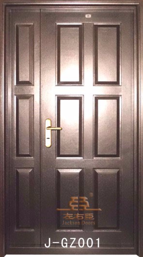 1、 材料:钢芯由两张1.0MM电解钢板夹高强度铝蜂巢构成。门扇表层和门框使用1.2MM不锈钢浮雕艺术板压型,手绘 环保金漆。